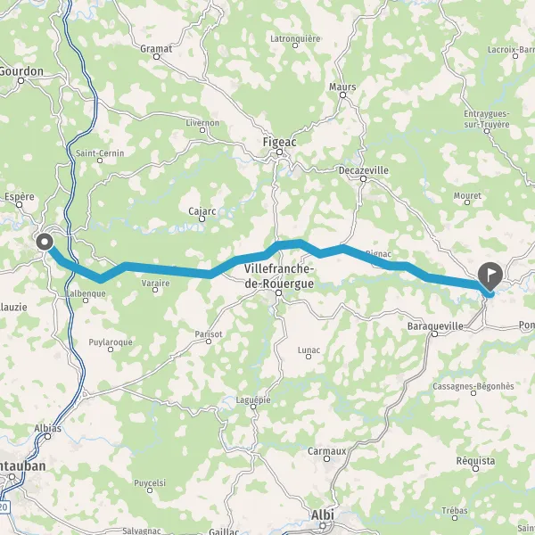 Tourner à gauche sur D22 (Route de Flaujac Poujols) et continuer sur 14 kilomètres