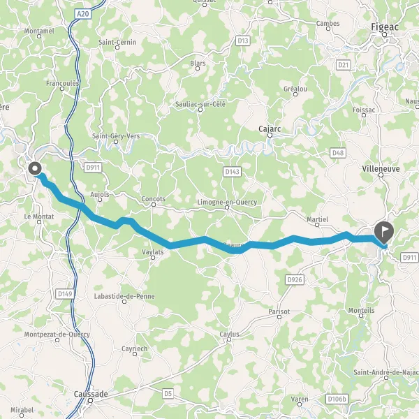 Tourner à gauche sur D22 (Route de Flaujac Poujols) et continuer sur 14 kilomètres