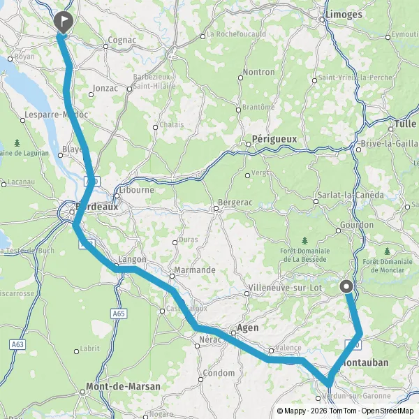 Prendre à droite et rejoindre A62 E72. Continuer sur 192 kilomètres