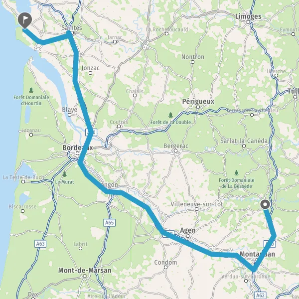Prendre à droite et rejoindre A62 E72. Continuer sur 192 kilomètres