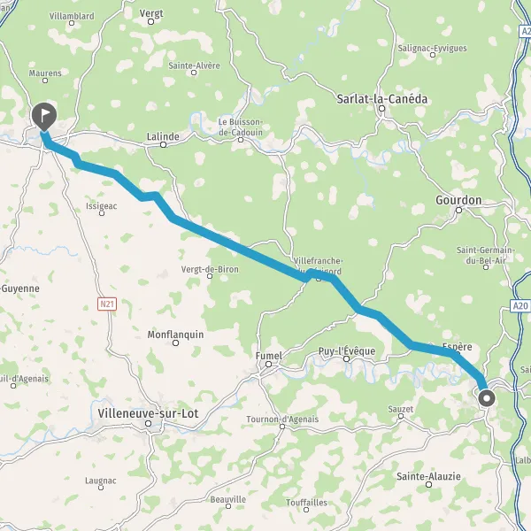Tourner à droite sur D660 (Route Pont du Vert) et continuer sur 27 kilomètres