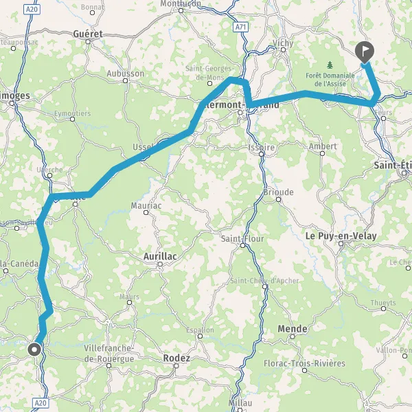 Prendre à droite et rejoindre A89 A71 E11 E70. Continuer sur 19 kilomètres
