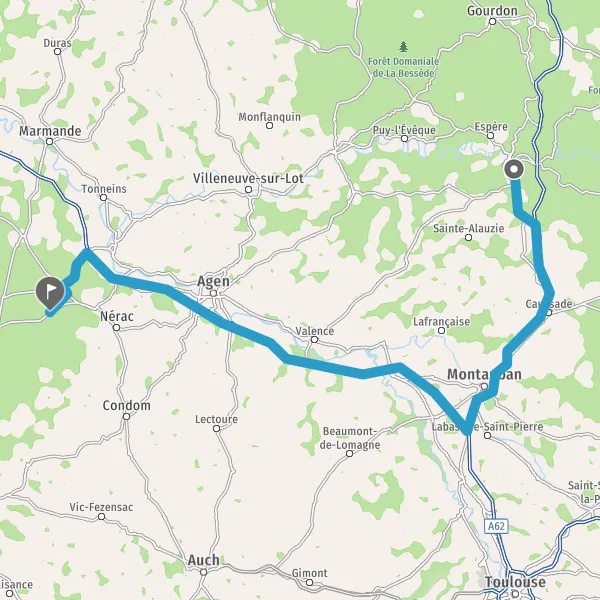 Prendre à droite et rejoindre A62 E72. Continuer sur 98 kilomètres