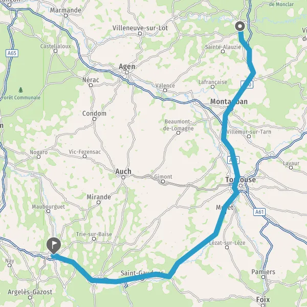 Prendre à droite et rejoindre A62. Continuer sur 650 mètres