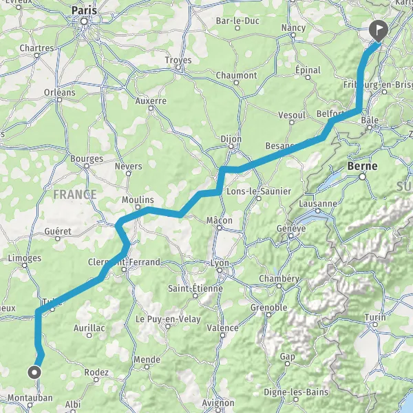 Prendre à droite et rejoindre A36. Continuer sur 225 kilomètres