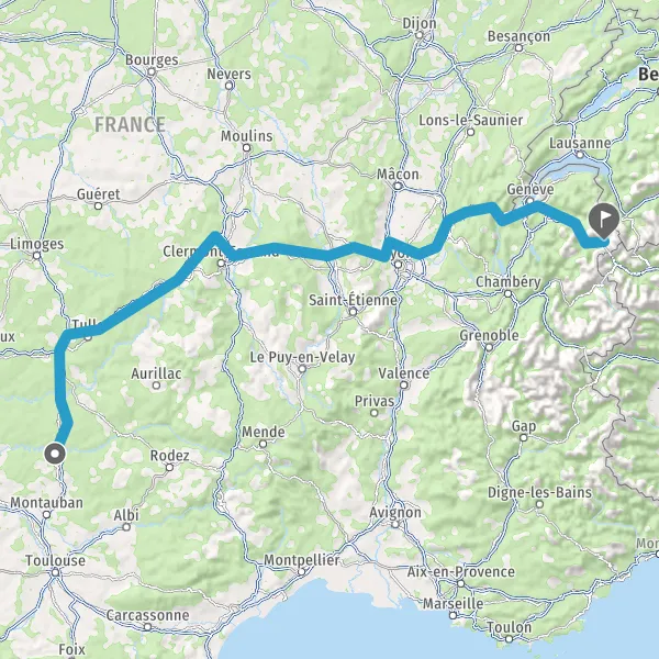 Prendre à droite et rejoindre A89 E70. Continuer sur 84 kilomètres