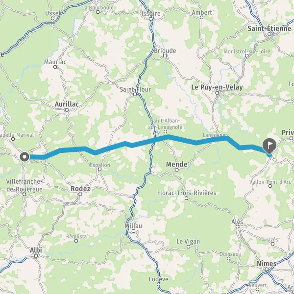 Tourner à droite sur N102 (Route d'Aubenas) et continuer sur 13 kilomètres