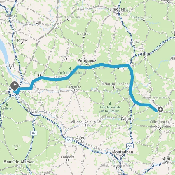 Trajet de Figeac (46100) à Bordeaux (33000) en voiture