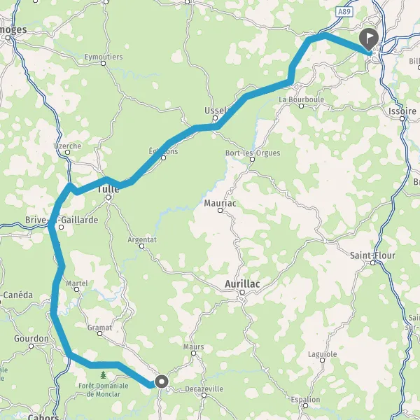 Prendre à droite et rejoindre A89. Continuer sur 131 kilomètres