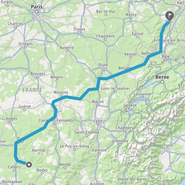 Prendre à droite et rejoindre A36. Continuer sur 225 kilomètres