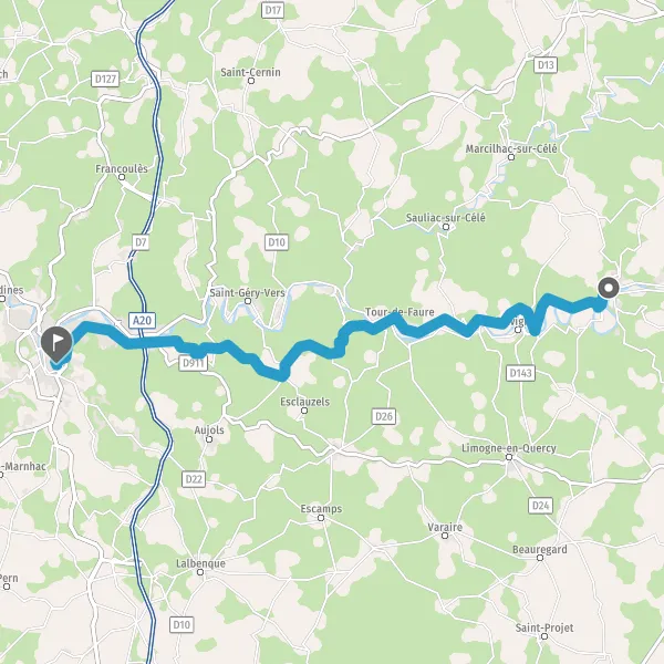 Tourner à droite sur D911 (Route de Cahors) et continuer sur 4,5 kilomètres