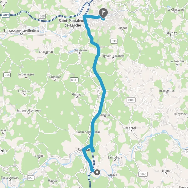 Au rond-point, prendre la 2ème sortie sur D820 (Route de Brive) et continuer sur 4,9 kilomètres