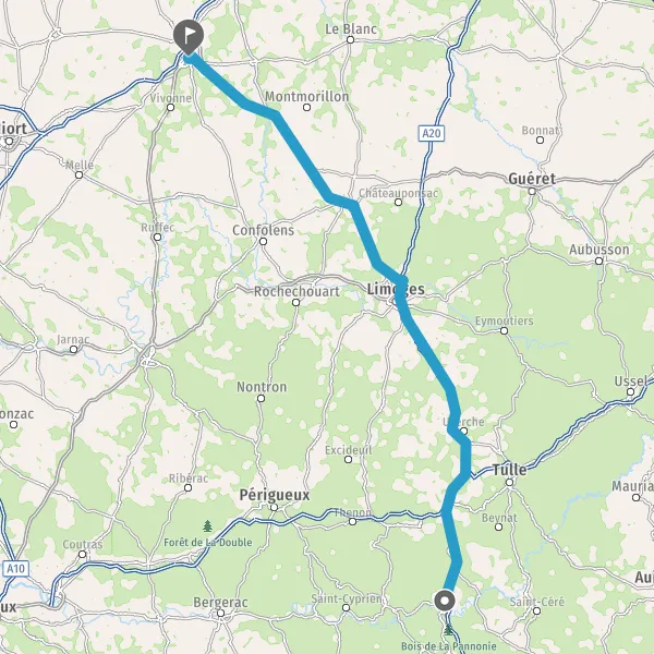 Au rond-point, prendre la 1ère sortie sur N147 (Route de Poitiers) et continuer sur 27 kilomètres
