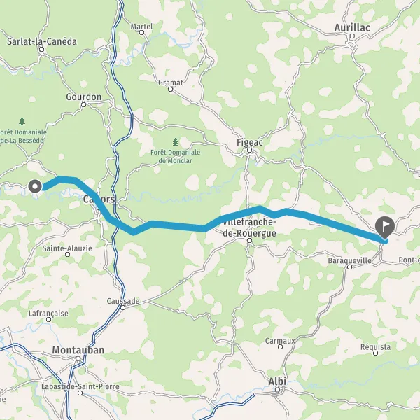 Tourner à gauche sur D22 (Route de Flaujac Poujols) et continuer sur 14 kilomètres