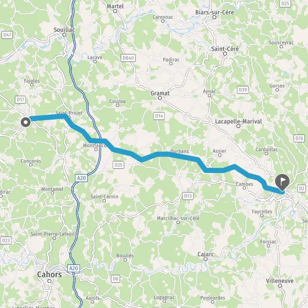 Tourner légèrement à gauche sur D2 (Route de Reyrevignes) et continuer sur 5,4 kilomètres