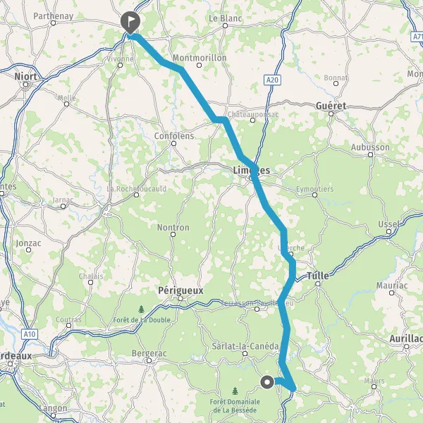 Au rond-point, prendre la 1ère sortie sur N147 (Route de Poitiers) et continuer sur 27 kilomètres