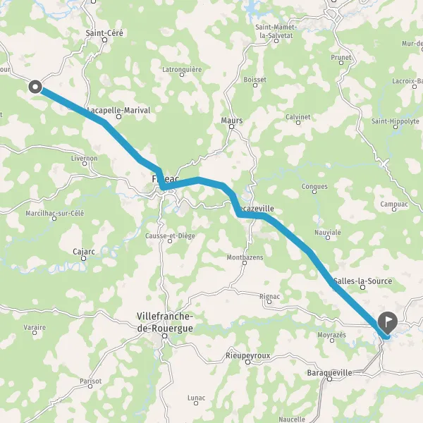 Au rond-point, prendre la 1ère sortie sur D840 (Route de Decazeville) et continuer sur 5,6 kilomètres