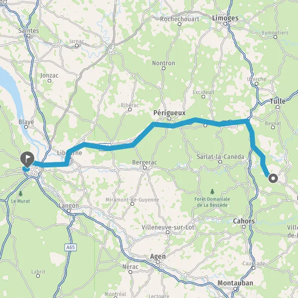 Payer 8,60 € (Péage Thenon Barriere) Prendre un ticket (Péage Mussidan Barriere) Payer 11,60 € (Péage Arveyres) 58 km