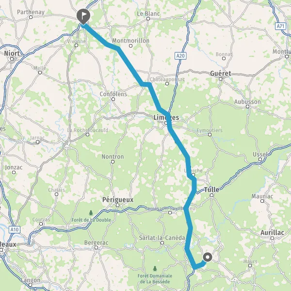 Au rond-point, prendre la 1ère sortie sur N147 (Route de Poitiers) et continuer sur 27 kilomètres