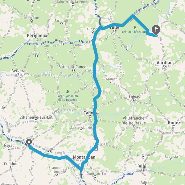 Au rond-point, prendre la 1ère sortie sur D16 (Rue du Goutal) et continuer sur 16 kilomètres