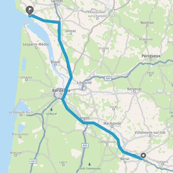 Prendre à droite et rejoindre A62. Continuer sur 124 kilomètres