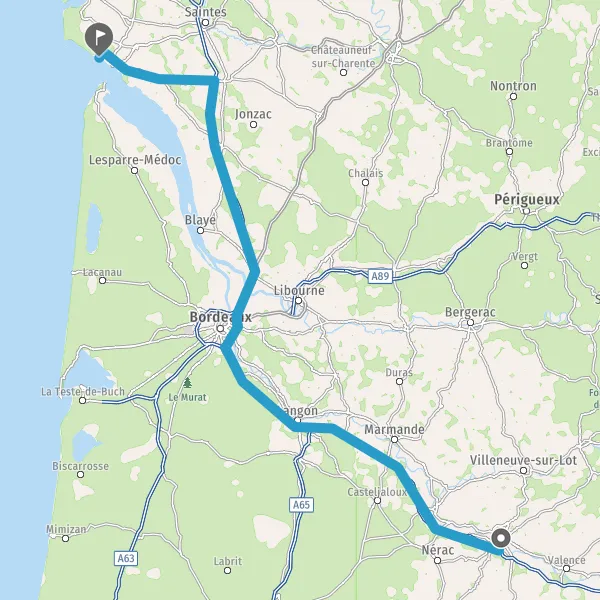 Prendre à droite et rejoindre A62. Continuer sur 124 kilomètres