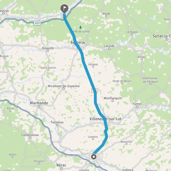 Au rond-point, prendre la 1ère sortie sur D709 (Route de Mussidan) et continuer sur 14 kilomètres
