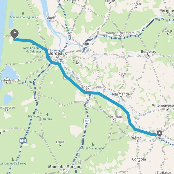 Prendre à droite et rejoindre A62. Continuer sur 124 kilomètres