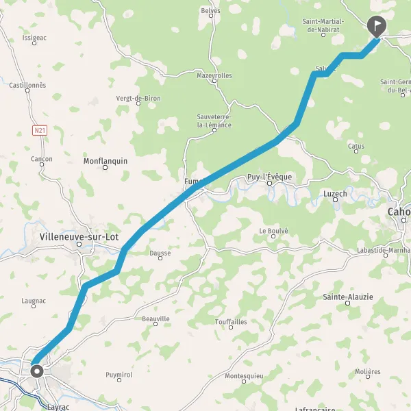 Au rond-point, prendre la 4ème sortie sur D911 (Avenue de Fumel) et continuer sur 14 kilomètres