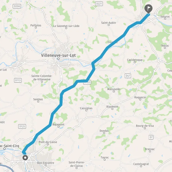 Au rond-point, prendre la 4ème sortie sur D911 (Avenue de Fumel) et continuer sur 14 kilomètres
