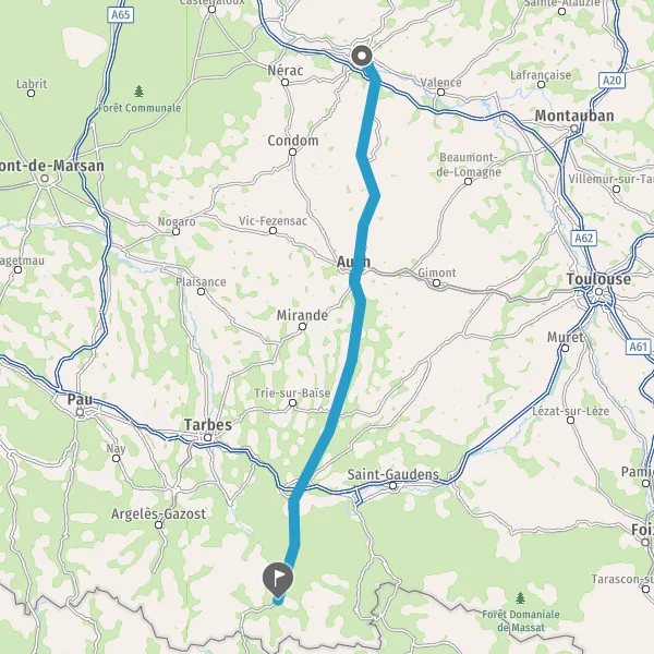 Au rond-point, prendre la 2ème sortie sur D929 (Route des Pyrénées) et continuer sur 21 kilomètres