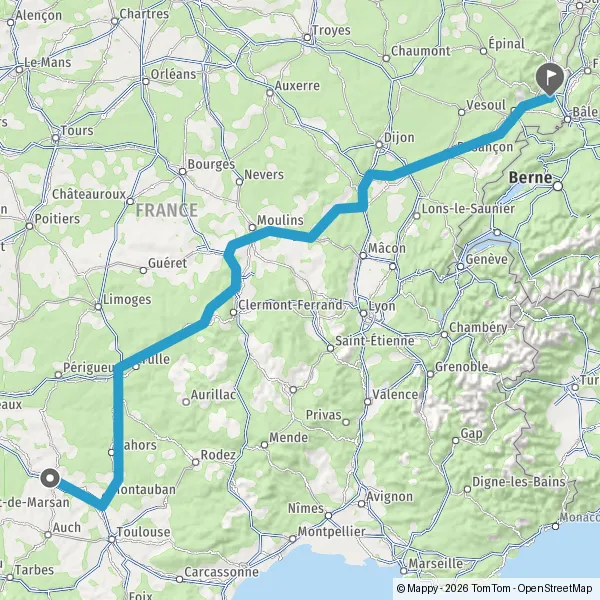 Prendre à droite et rejoindre A36. Continuer sur 221 kilomètres