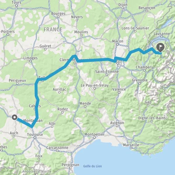 Prendre à droite et rejoindre A89 E70. Continuer sur 84 kilomètres