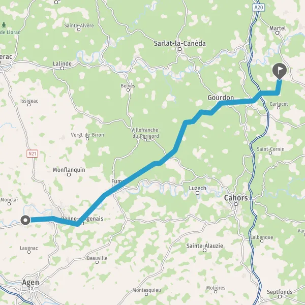 Au rond-point, prendre la 4ème sortie sur D911 (Avenue de Fumel) et continuer sur 14 kilomètres