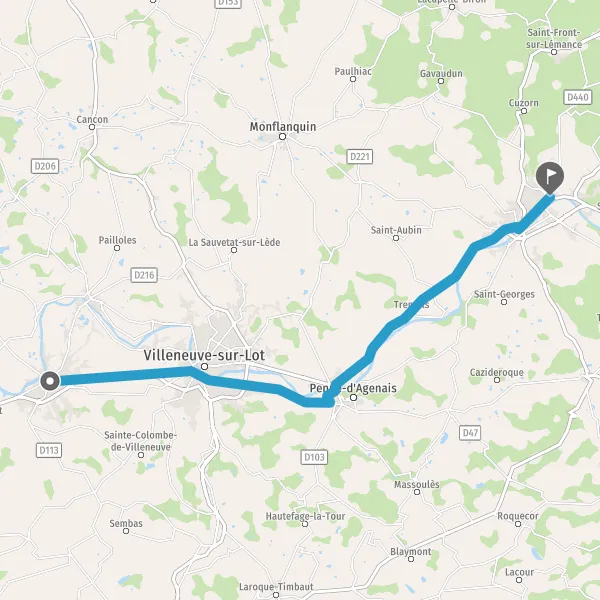 Au rond-point, prendre la 4ème sortie sur D911 (Avenue de Fumel) et continuer sur 14 kilomètres