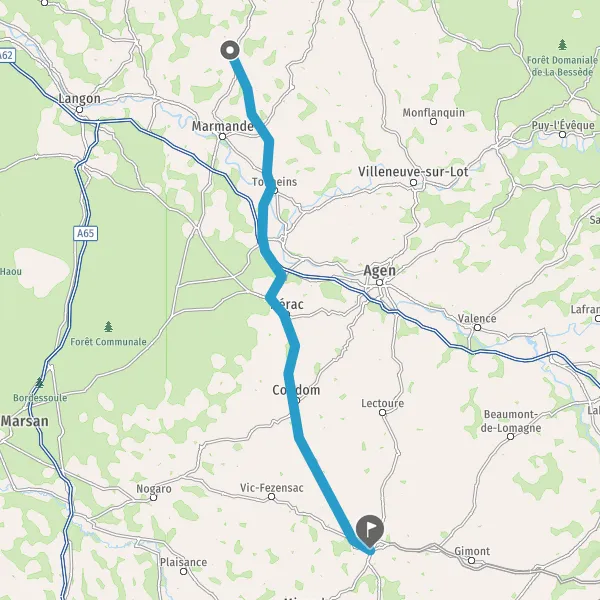Au rond-point, prendre la 2ème sortie sur D708 (Route de Marmande) et continuer sur 4,7 kilomètres