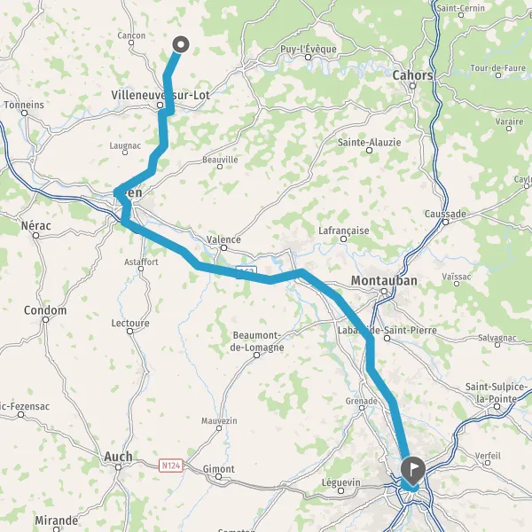 Au rond-point, prendre la 1ère sortie sur N21 N1021 D13 (Route de Laugnac) et continuer sur 450 mètres