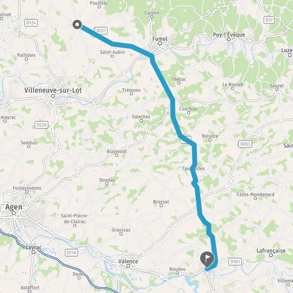 Au rond-point, prendre la 1ère sortie sur D124 (Route de Lacaussade) et continuer sur 8,8 kilomètres
