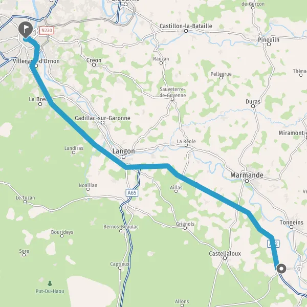 Avec le mode voiture, vous pouvez configurer vos options (type de véhicule, autoroute ou non, péage ou non, distance la plus courte), tout en ayant accès aux infos de circulation grâce à notre service d'info-trafic en temps réel. Ainsi faites des économies sur le coût ou la durée de votre voyage, en trouvant le trajet Damazan Bordeaux adapté à vos besoins.