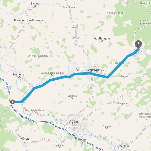 Au rond-point, prendre la 4ème sortie sur D911 (Avenue de Fumel) et continuer sur 14 kilomètres