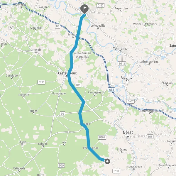 Tourner à droite sur D8 D283 (Route de Houeillès) et continuer sur 290 mètres