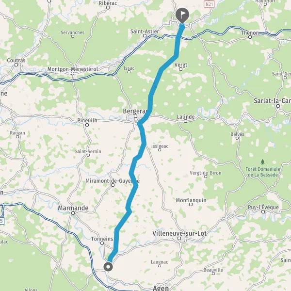 Au rond-point, prendre la 2ème sortie sur D933 (Route de Bergerac) et continuer sur 8,8 kilomètres