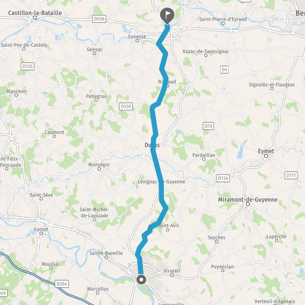 Prendre à droite et rejoindre D708 (Route de Marmande). Continuer sur 5,7 kilomètres