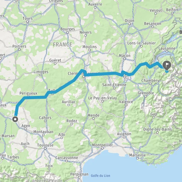 Prendre à gauche et rejoindre A89 E70. Continuer sur 122 kilomètres