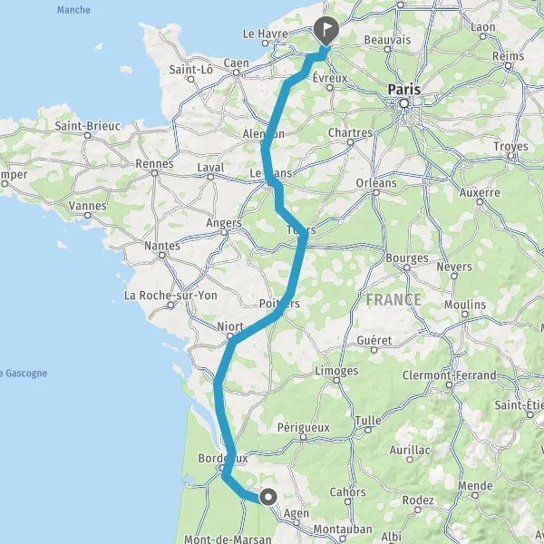 Continuer E5 (L'Aquitaine) sur 328 kilomètres