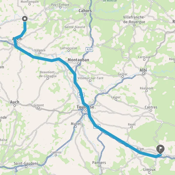 Prendre à gauche et rejoindre A61. Continuer sur 20 kilomètres