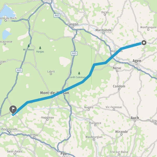 Au rond-point, prendre la 2ème sortie sur D824 (Route de Bayonne) et continuer sur 12 kilomètres