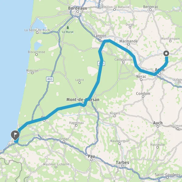 Prendre à droite et rejoindre D824e (Route de Dax). Continuer sur 2,5 kilomètres
