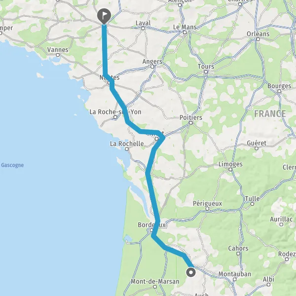 Prendre à droite et rejoindre A83. Continuer sur 150 kilomètres