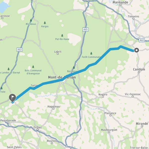 Au rond-point, prendre la 2ème sortie sur D824 (Route de Bayonne) et continuer sur 12 kilomètres